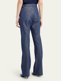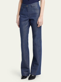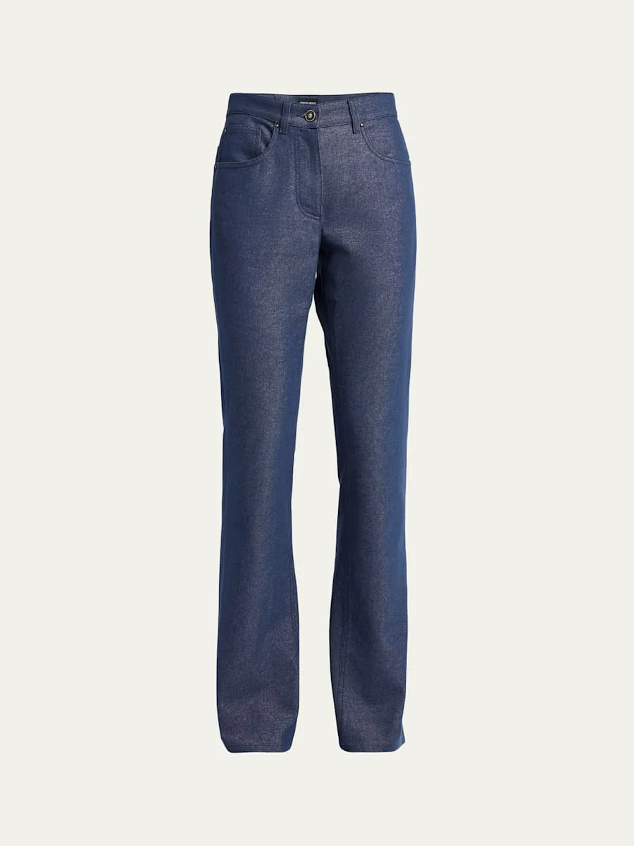 Giorgio Armani bootleg denim jeans features logo embroidery at the back pocket Mid-rise; sits high on hip Button/zip fly; belt loops Five-pocket style Straight legs Full length Relaxed fit Cotton/viscose Dry clean Made in Italy Model is 5'10"/177cm. Online Inquiries: BGS21_B9AUC| Store Inquiries: #4825383