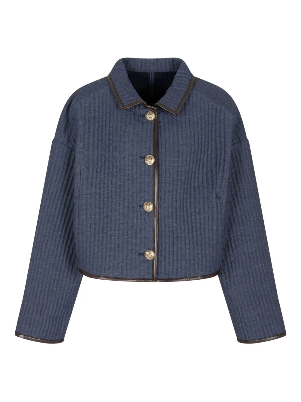 buttoned ribbed jacket Highlights - Blue - Button fastening - Classic collar - Long sleeves - Trim detail Made in Italy Composition Outer: Viscose 42%, Cotton 30%, Mulberry Silk 14%, Virgin Wool 14% Polyester 100% Lining: Mulberry Silk 100% Washing instructions Read Manufacturer Guidelines