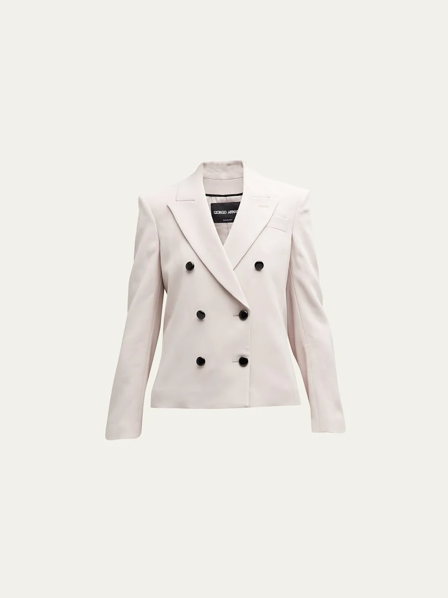 Giorgio Armani blazer jacket in cady Peak lapels; doublebreasted front Long sleeves; button cuffs Chest welt pocket Tailored fit Cropped length Viscose/polyamide Dry clean Made in Italy