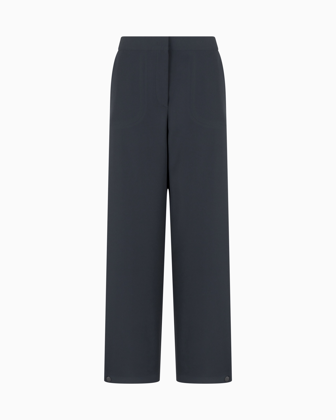 Straight trousers made from technical cady that feel cosy and silky. The design with an essential construction, elasticated waistband, hook and zip closure and side pockets, is embellished with a small button detail at the hem. A fresh and versatile offering for a casual look. Smooth waistband Concealed zip-and-hook closure Two slant pockets Two back patch pockets Button detail at the ankle cuff Unlined Made in Italy Product Code: GW000768TE10832U8110