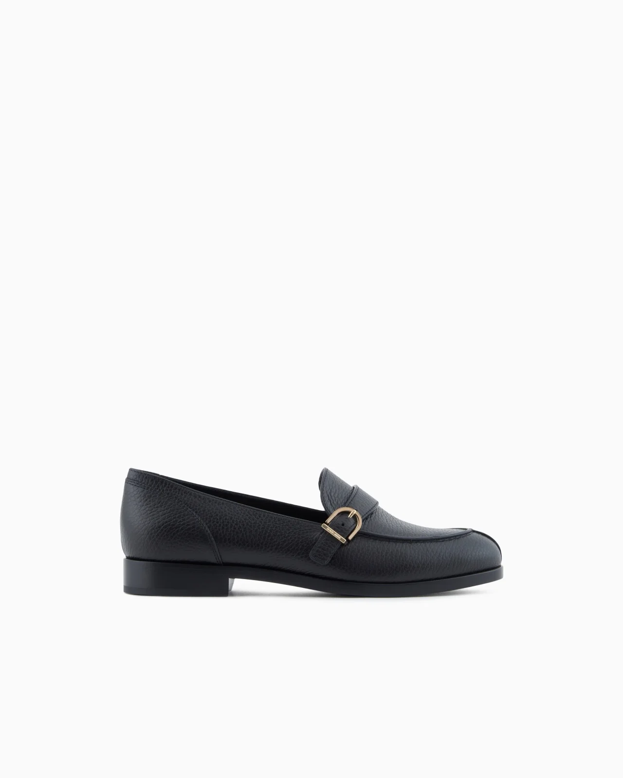 Loafers made of calfskin leather, with a gold-coloured metal buckle to close the saddle detail, a design that that echoes the stylistic codes of leather goods. The item is a modern reinterpretation of an archive piece and is distinguished by its tapered shape. The monobloc leather sole is completed by a rubber injection on the heel. Saddle detail with metal buckle Leather insole with stitched logo label Leather monobloc sole Rubber injection on the heel Heel height: 2 cm Made in Italy Product Code: GW001921AF19133UC001