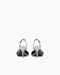 Elegant slingbacks made of calfskin and embellished with a contrasting mirror-effect leather trim. The style features a slightly asymmetric top line, a banded mirror-effect leather stiletto heel at a comfortable height and an adjustable strap for a perfect fit. Refined and feminine, they will complete numerous looks with a sophisticated touch. Pointed toes Slightly asymmetric top line Adjustable strap Light gold-tone banded leather insole Sewn logo label Leather soles with rubber toe Light gold-tone banded stiletto heel Heel height: 6.5 cm Made in Italy Product Code: GW002123AF19742M6204