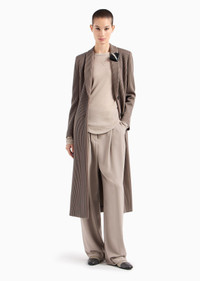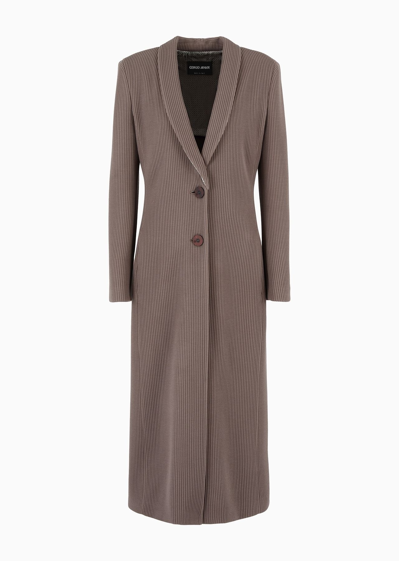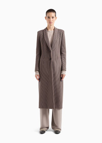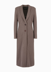 Sophisticated single-breasted coat made of jersey, distinguished by the cannete weave that highlights its vertical lines. The style features a shawl lapel, a visible button closure and two side pockets. A versatile style that complements a wide range of daytime looks. Product Code: GW000203TE108491U6125 Details Composition 55% Polyamide 42% Cupro 3% Elastane Regular fit Shawl collar Buttoned, single-breasted closure Two side welt pockets Semi-lined in printed silk Length: 120 cm from the centre back Made in Italy Fitting The model is 178 cm tall and is wearing size 38/S