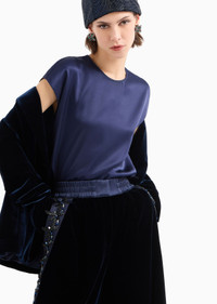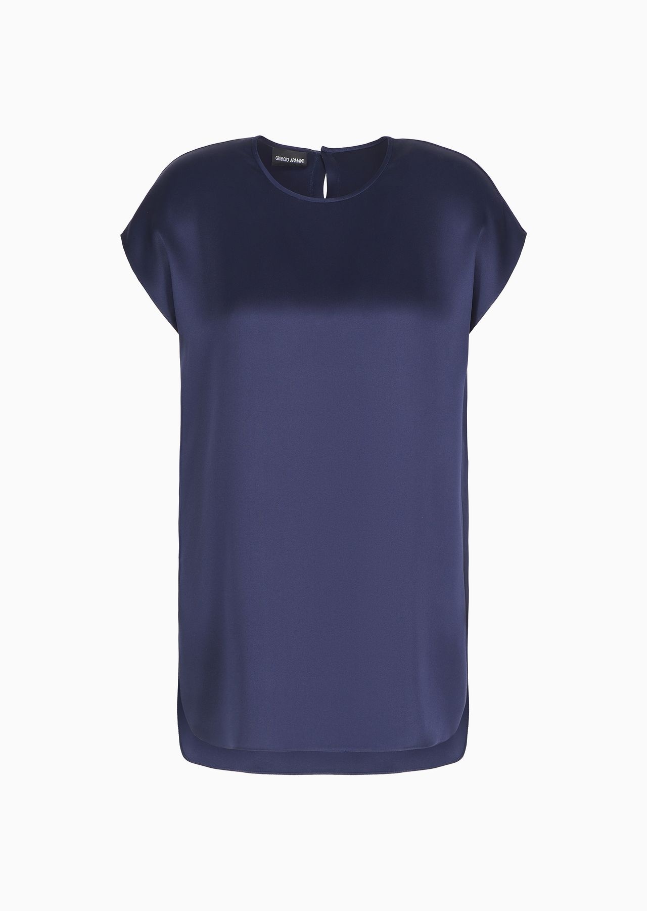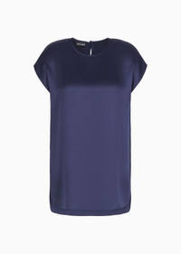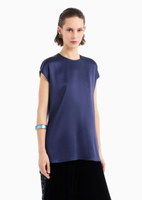 Essential and minimalist, this crew-neck blouse in silk double satin is the perfect complement to effortless looks. Defined by short cap sleeves and long, slinky lines, it comes in the full-bodied, deep colours of the collection. Product Code: GW000573TE101011UB115 Details Composition 100% Silk Crew neck Short cap sleeves Back button closure Side slits Unlined Made in Italy Fitting The model is 178 cm tall and is wearing size 38/S