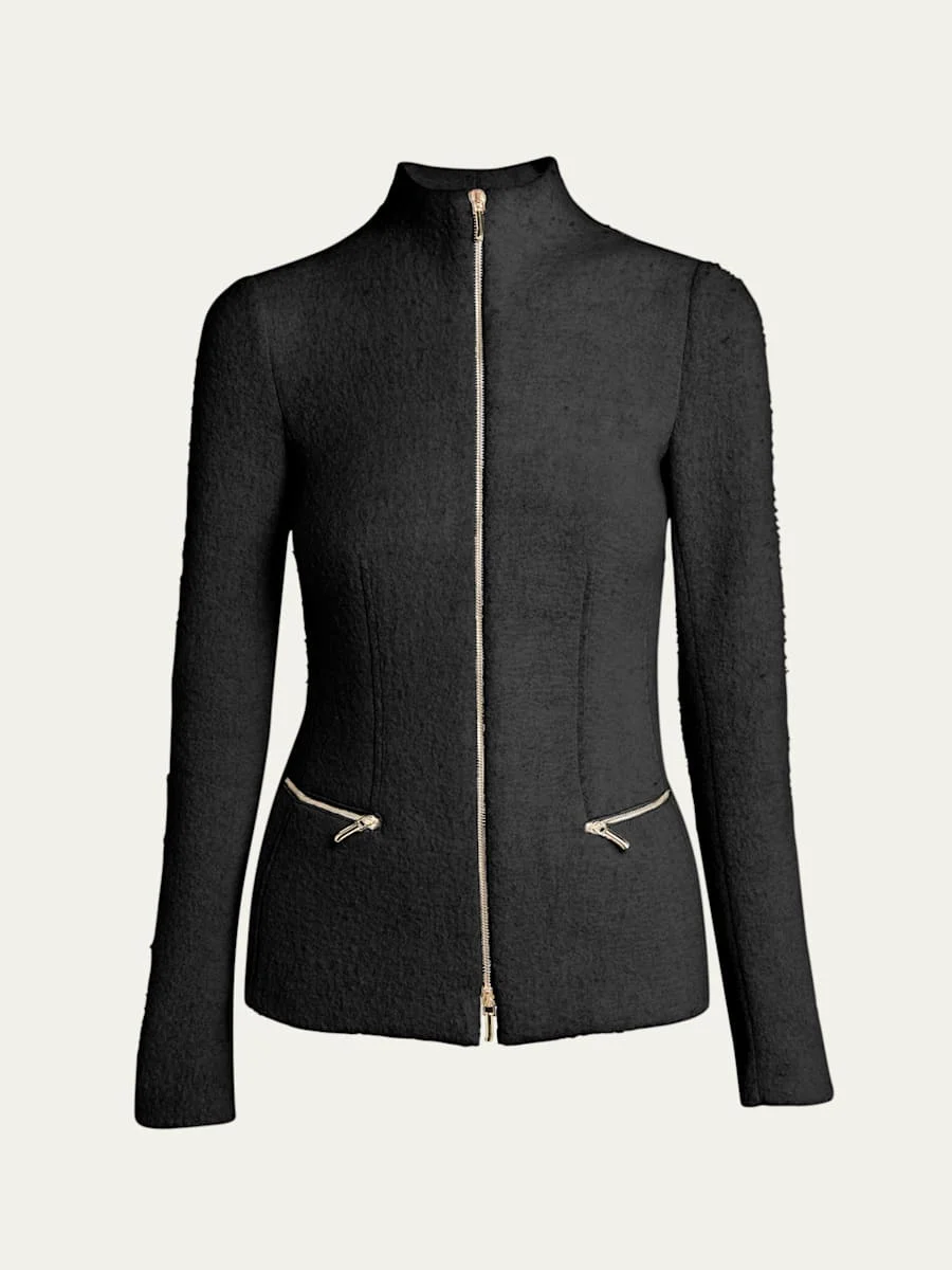 Cashmere-Blend Zip-Front Knit Jacket