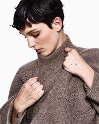 Mock-neck jumper made from cosy, warm cashmere yarn, available in versatile shades. The style is distinguished by its modern, relaxed silhouette, defined by loose lines and slightly dropped shoulders that ensure a comfortable fit and effortless look. A versatile offering with an incredibly soft feel, perfect for completing elegant daytime looks. Fineness: 5 Draped fit Mock neck Long sleeves with dropped shoulders Ribbed collar, cuffs and hem Made in Italy Product Code: GW002088AF19691U1046