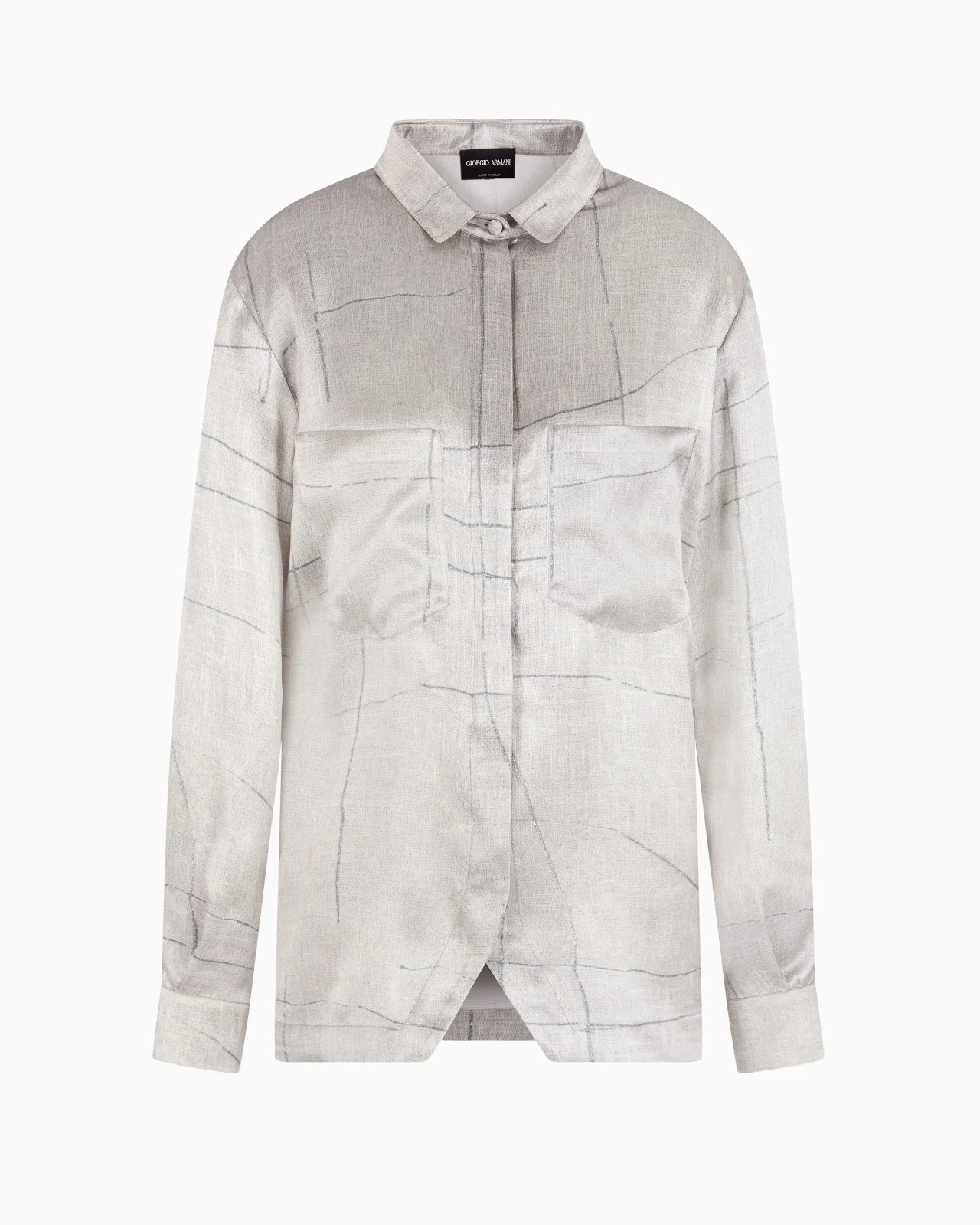 Shirt made of silk satin, embellished with an irregular striped print. With its pointed collar, concealed buttoning and patch pockets, this style is distinguished by a sophisticated attitude and relaxed, flowing fit, perfect for the summer season. A piece designed to complete daytime looks when worn with the collection’s trousers and skirts. Point collar Concealed button closure Long sleeves Two patch pockets with flaps Single-buttoned cuffs Unlined Made in Italy Product Code: GW000775TE13743F8078