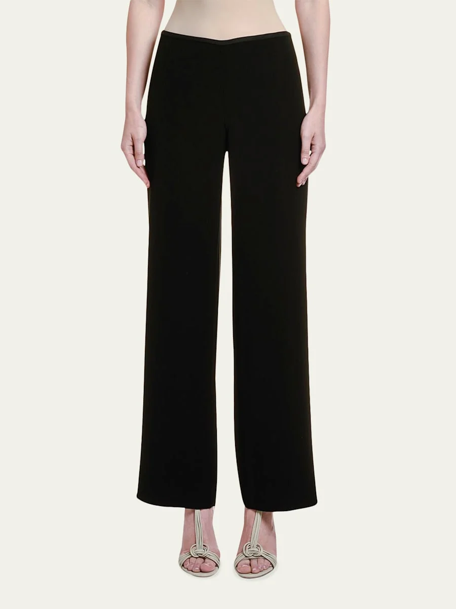 Giorgio Armani "China" pants in crepe. Mid rise. Wide leg fit. Full length. Side zip. Polyester. Made in Italy. Model is 5'10"/177cm. Online Inquiries: BGS21_B5AJF| Store Inquiries: #3304008