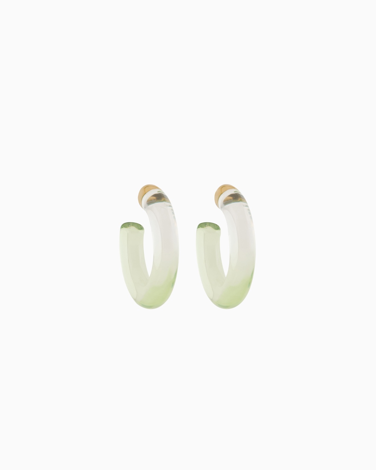 A subtle hint of colour accents these semi-circular earrings made of clear resin. The accessory is enhanced by an entirely handmade shading effect, making it a versatile option for every day. Butterfly backs Clear hand-shaded resin Made in Italy Product Code: GW001300AF16288M2012