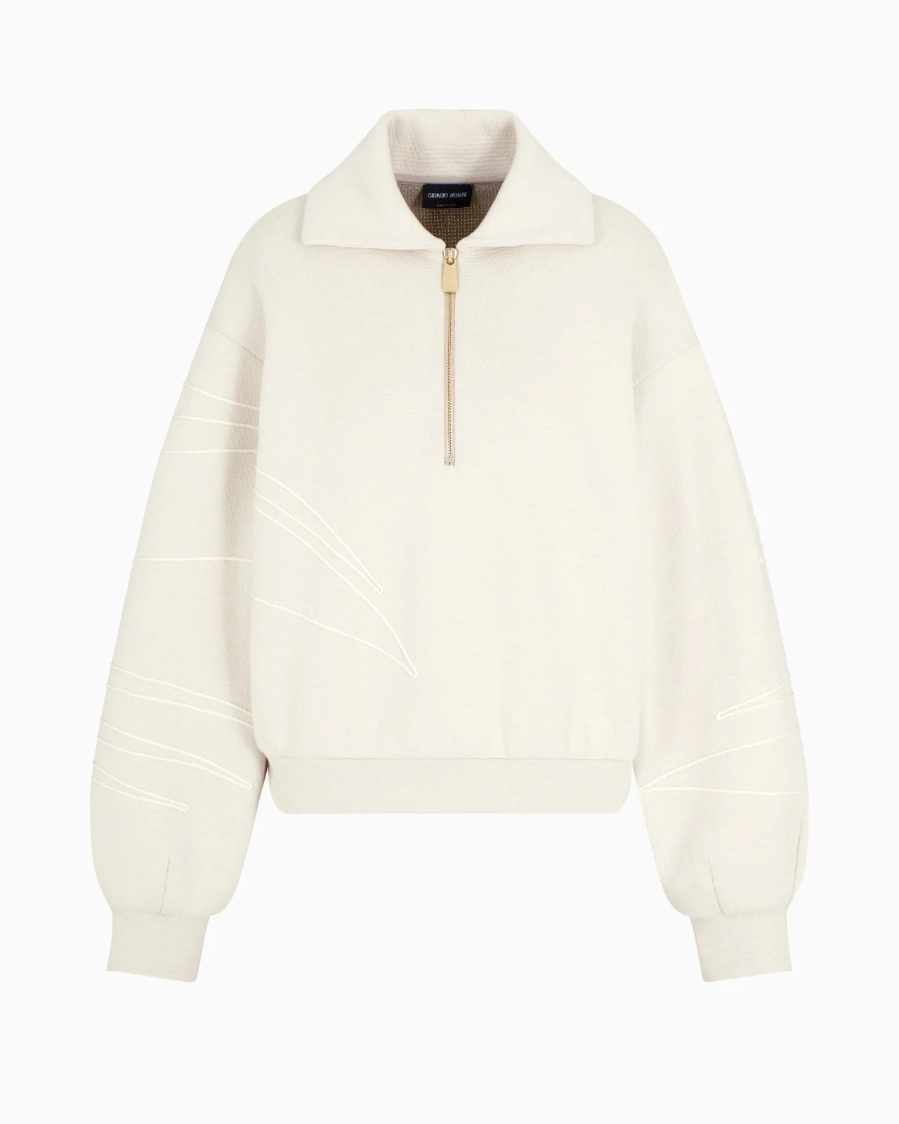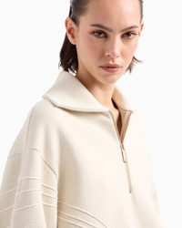 Sweatshirt made from cosy cotton jersey and linen, featuring a three-quarter zip fastening and knit polo collar. The style, enlivened by handmade topstitched-effect embroidery, reinterprets a sportswear-piece in the brand’s signature style. Feminine and versatile, it accompanies laid-back looks with flair. Polo-shirt collar Three-quarter-zip closure Long sleeves Handmade matching embroidery detail Made in Italy Product Code: GW000955AF15081U0007