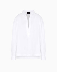 An effortlessly fresh attitude defines this shirt crafted from cosy cotton twill. The style features a classic collar, button-free polo-collar opening and side slits that highlight its laid-back spirit. An item designed to elegantly wear on various occasions. Classic collar Open polo-collar neckline Long sleeves Single-buttoned cuffs Back yoke Side slits Unlined Made in Italy Product Code: GW000777TE13820U0002