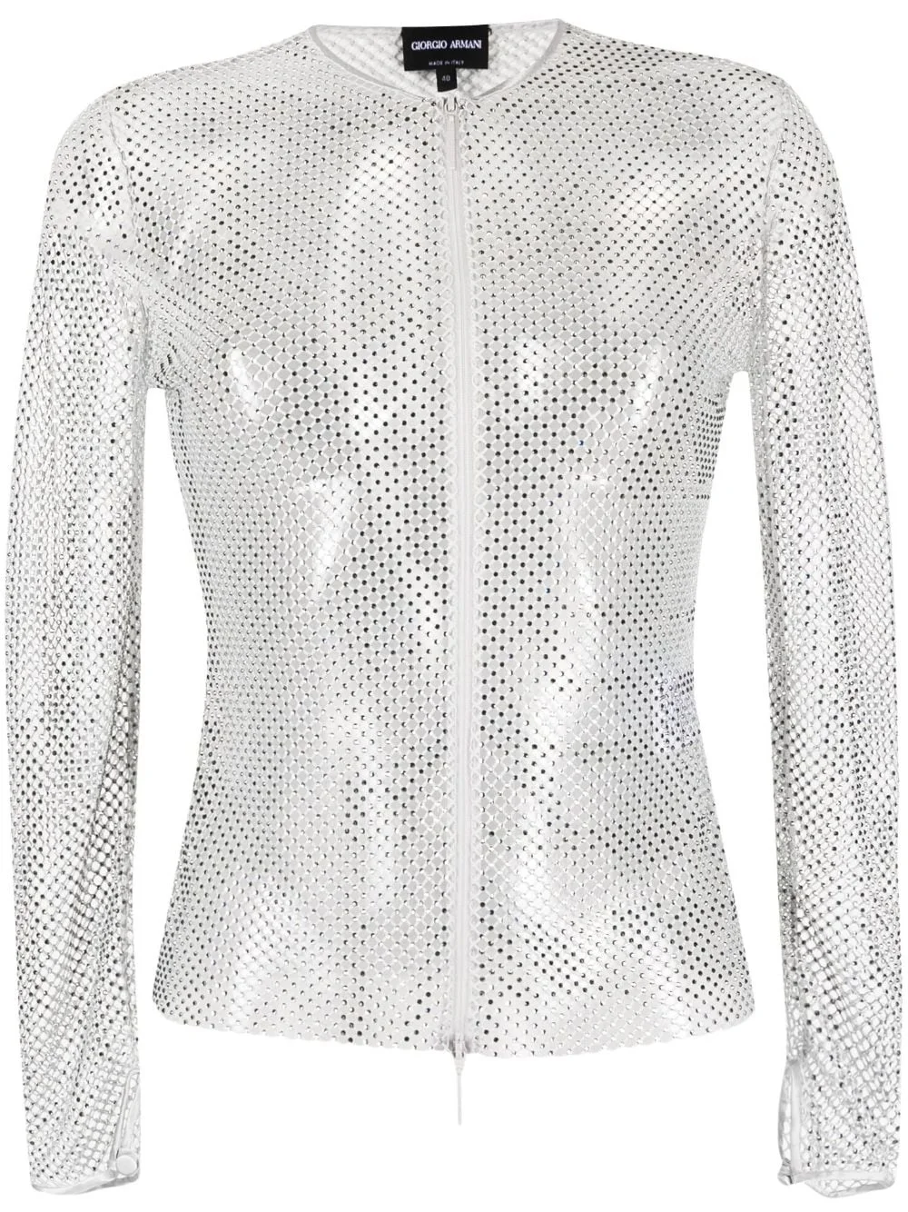 crew-neck mesh T-shirt Highlights - Silver-tone - Silk - Stretch-design - Mesh panelling - Round neck - Front two-way zip fastening - Long sleeves - Buttoned cuffs - Straight hem Made in Italy Composition Silk 100%, Polyester 95%, Spandex/Elastane 5%