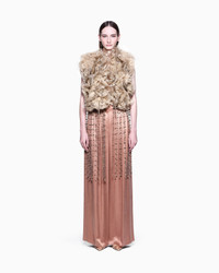 Dramatic and luxurious, this cape will turn heads: made entirely by hand, it consists of many small flowers made of matching tulle and crinoline, embellished with matching beads and rhinestones. A cascade of long matching fringes made of beads and rhinestones frame the figure, adding brightness and movement. An irresistible accessory, the result of expert craftsmanship, designed for the most special occasions. Entirely handcrafted 100 hours of workmanship Flowers made of tulle and crinoline, with matching beading appliques Long fringes made from matching beads and rhinestones Made in Italy Product Code: GW002118AF19736U4176