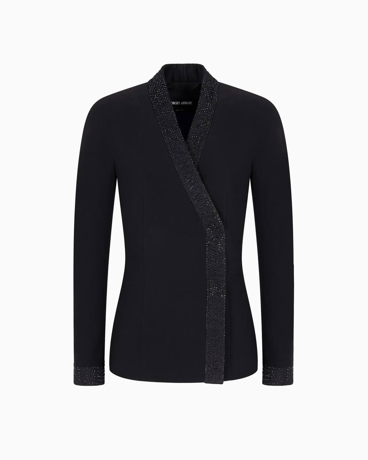 SINGLE-BREASTED JACKET IN SILK CADY WITH APPLIED CRYSTALS