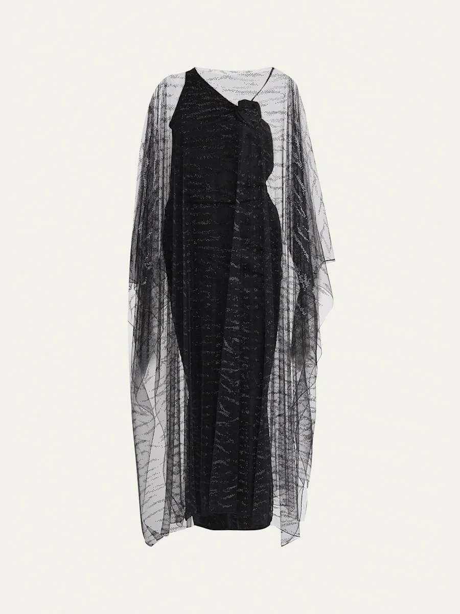 Crystal Embellished Sheer Long Cape