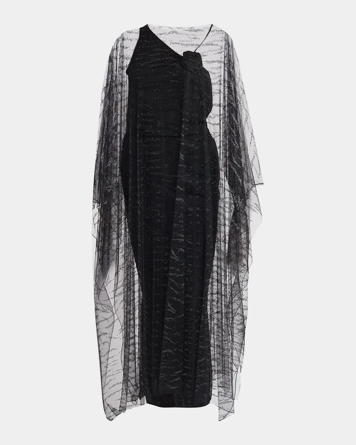 - Giorgio Armani sheer cape embellished with allover crystal strass - High neckline - Long sleeves - Full length - Pullover style - Nylon/polyamide - Dry clean - Made in Italy