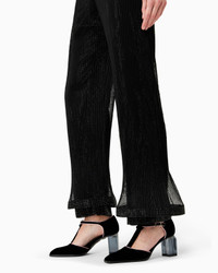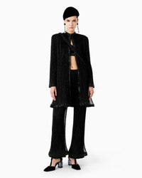 A shower of bright black crystals adorns the lines of these pleated tulle trousers. The exceptional and exquisite effect is created by the combination of the first layer in pleated tulle with a second layer covered all over in heat-sealed crystals. The embroidered hem with black baguettes finishes the piece, which has a concealed zip fastening and a slight flounce at the hem that adds movement. Perfect teamed with the long jacket in the same fabric for a total look designed to impress. Product Code: 3WHPR02KT04MT1PZ01 Details Composition 100% Polyamide Strap with baguette embroidery and black heat-sealed crystals Pleated tulle style Layered in black tulle with a shower of matching heat-adhesive rhinestones Lined in black silk Edging at the hem in black baguette embroidery and heat-sealed crystals Made in Italy Fitting The model is 178 cm tall and is wearing size 38/S Italian Size