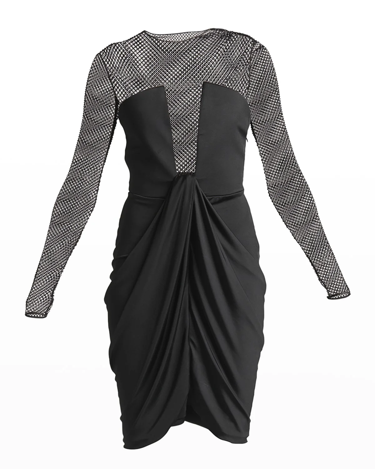 Crystal Mesh Draped Jersey Illusion Dress