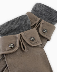 Sophisticated gloves made of deer leather, embellished with a turn-up detail, customised with a metal GA logo. With the warmth of a soft cashmere lining, they are perfect for taking on the colder days in the city with elegance. Product Code: 7940544F200102043 Details Composition 100% Buckskin Turn-up detail on cuff with metal GA logo Cashmere lining Made in Italy