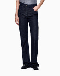 Flared trousers made from stretch-cotton denim, with a comfortable fit and cosy feel. The high-waisted style with stitched pockets is customised with a leather patch with a heat-stamped Giorgio Armani logo. An extremely versatile piece, the perfect complement to numerous looks, in combination with other creations from the denim line. The piece is part of the Denim Collection, which interprets the world of denim through the brand’s iconic style. Silky-soft yarns and a versatile colour palette: denim is seen in a whole new light, as more feminine and luxurious. Waistband with belt loops Button and zip closure Two rounded jeans pockets on the front Two back patch pockets Unlined Made in Italy Product Code: GW001775AF19735MB036