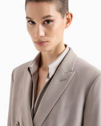 The elegance of silk softens the lines of this heavily masculine-inspired double-breasted jacket. With notched lapels and two patch pockets, the style is perfect worn with flowing trousers and a crew-neck blouse for a look that is relaxed yet sophisticated. Product Code: GW000145TE108401U6092 Details Composition 100% Silk Double-breasted jacket Peak lapels Double-breasted six-button closure Two patch pockets Central back vent Button cuffs Lined Length: 66 cm Made in Italy Fitting The model is 178 cm tall and is wearing size 38/S