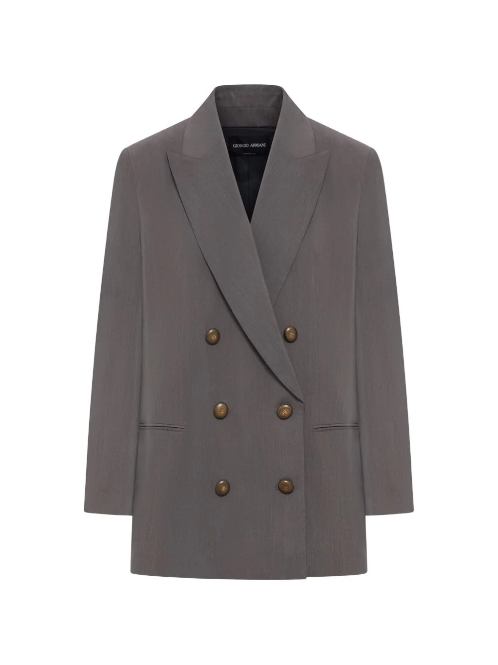 double-breasted blazer Highlights - Grey - Double-breasted - Lapel collar - Button fastening - Long sleeves - Welt pockets Made in Italy Composition Silk 84%, Polyester 16% Washing instructions Read Manufacturer Guidelines