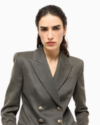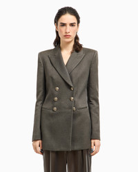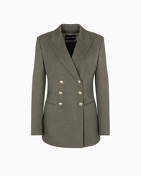 Sophisticated double-breasted jacket made from luxurious silk, viscose and cotton drill, a fabric that combines sheen, softness and a structured feel. The style is defined by a classic double-breasted closure with exposed metal buttons that add light. The silhouette is enhanced by a slightly fitted line, featuring peak lapels, side welt pockets and a slit at the back. A perfect creation for completing daytime looks with a refined touch. Double-breasted jacket Peak lapels Double-breasted six-button closure Long sleeves Two welt pockets Buttons at the sleeve hem Central back vent Lined Length: 70 cm from centre back Made in Italy Product Code: GW001948TE17948U7047