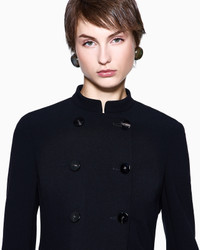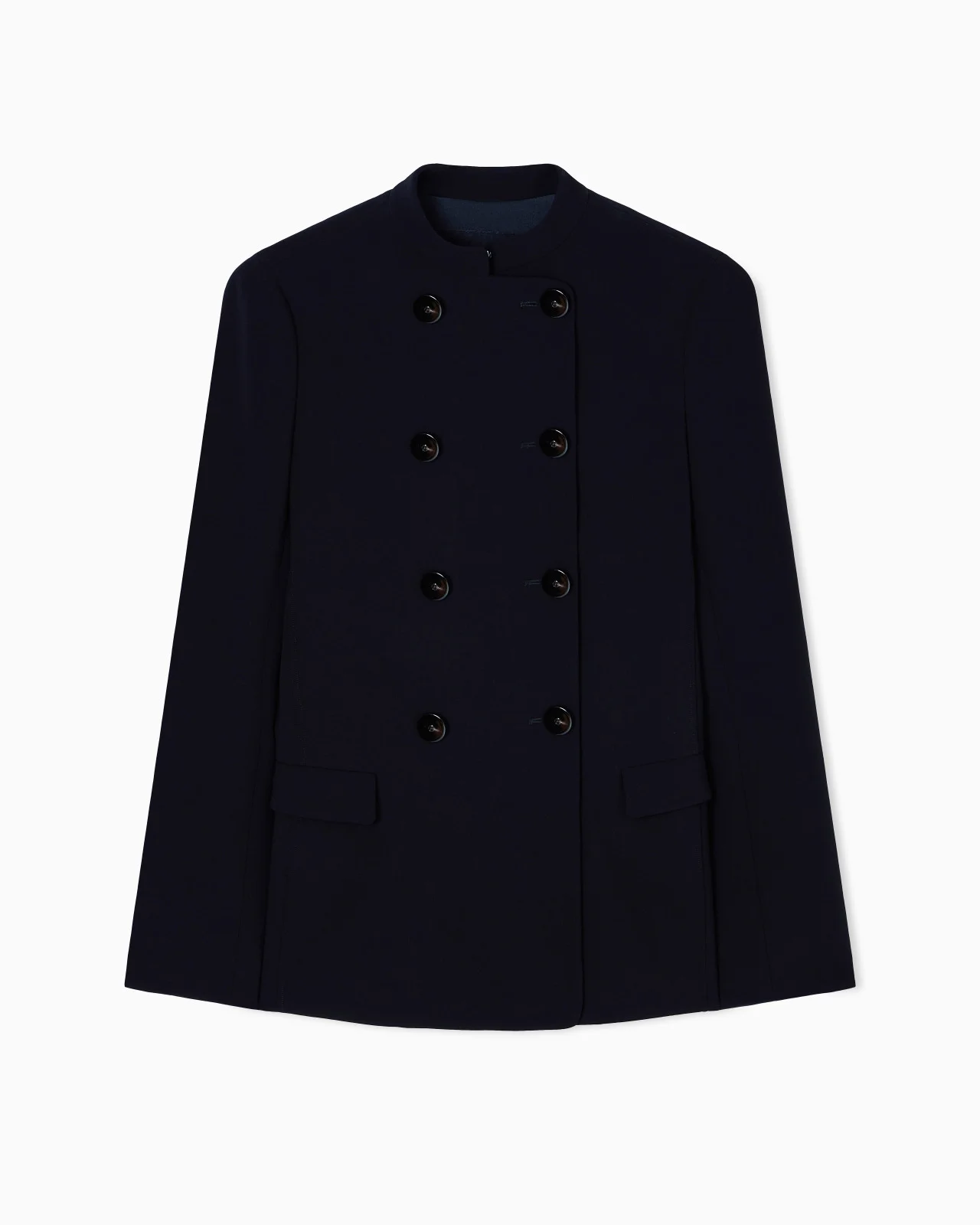 Double-breasted jacket made from luxurious wool crepe with a cosy, warm feel. With its slim lines that elegantly adorn the feminine silhouette, this style features a guru collar, double-breasted fastening with horn buttons and front pockets with flap. A refined, classic item designed to add a sartorial touch to a wide array of formal, sophisticated looks. Double-breasted jacket Guru collar Double-breasted closure with eight buttons Two front flap pockets Slit in the cuff Length: 66 cm from centre back Made in Italy Product Code: GW001899TE14246UC001