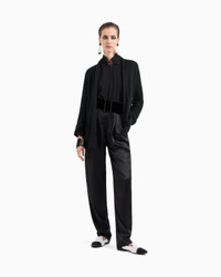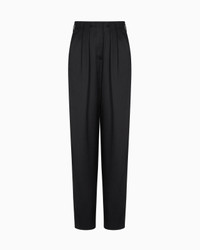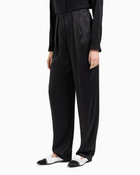 High-waisted trousers made from double silk satin, available in black and white. Featuring symmetrical pleats on the front and side pockets, they are an expression of the collection’s sophisticated spirit. Perfect paired with jackets and shirts for refined, elegant looks.<br>The garment is part of the Holiday selection, which plays with a minimalist colour palette of black and white, colours that have always been a symbol of sophistication. A colour choice found in the fabrics, embroideries and accessories that express the essence of Armani spirit, distinguished by clean, androgynous-inspired lines, that are still always feminine and sensual. Double-pleat trousers Waistband with belt loops Concealed zip-and-hook closure Two side slant pockets Unlined Length: 115 cm Made in Italy Product Code: GW001564TE10101UC001