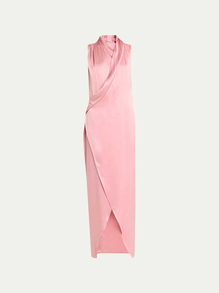 Giorgio Armani draped cowl-neck gown in silk Cowl neckline Sleeveless Concealed back zip Front center slit Hem falls below the knee Column silhouette Silk Lining: Silk Dry clean Made in Italy Size & Fit: Model height: 5’10/ bust 33” hip 36” Model is wearing size 40 Online Inquiries: BGS21_T53FU| Store Inquiries: #4625455