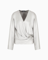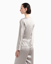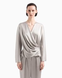 Long-sleeved shirt made from double silk satin, featuring a draped V neck. The style features a side closure with concealed buttons, elegantly accentuating the waist. A versatile style, available in the collection’s colour palette, perfect for various looks. V neck Front draping Long sleeves Side closure with concealed small press studs Unlined Made in Italy Product Code: GW000843TE10101U8045