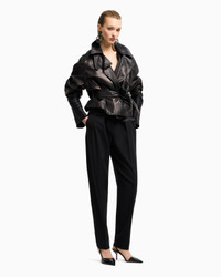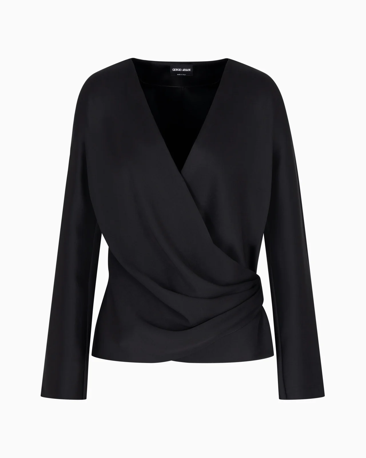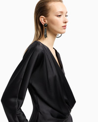 Long-sleeved shirt made from double silk satin, featuring a draped V neck. The style features a side closure with concealed buttons, elegantly accentuating the waist. A versatile style, available in the collection’s colour palette, perfect for various looks. V neck Front draping Long sleeves Side closure with concealed small press studs Unlined Made in Italy Product Code: GW000843TE10101UC001