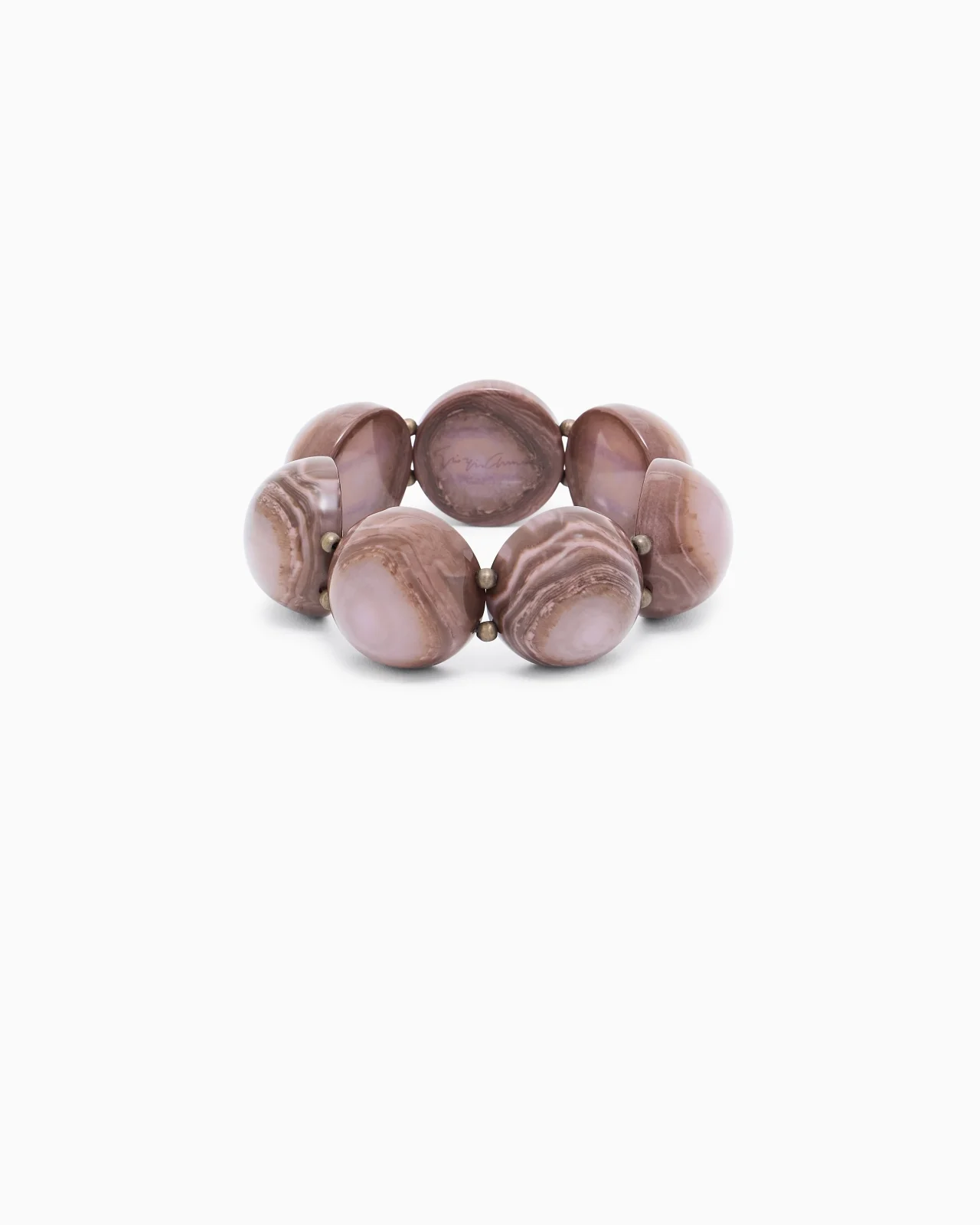 Elasticated bracelet featuring large cabochons made of agate-effect resin, interspersed with brass-coloured beads. A refined accessory, perfect for embellishing looks teamed with the matching earrings. Agate-effect resin cabochons Bronze-coloured beads Made in Italy Product Code: GW002266AF20271UA215
