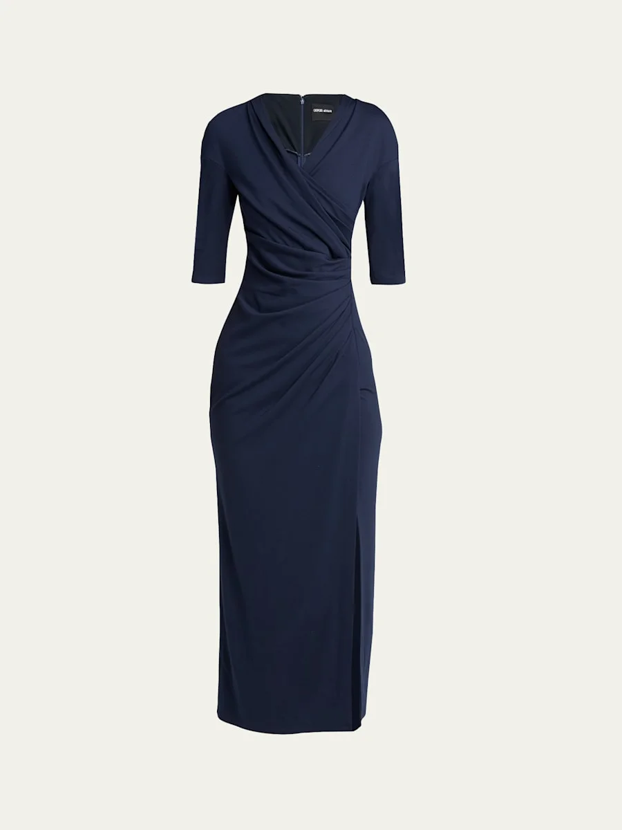Giorgio Armani dress is crafted from viscoseblend crepe draped in faux wrap fashion and falls to a side slit hem Surplice neckline Elbow sleeves Sheath silhouette Hem falls below the knee Side slit hem Invisible back zip Viscose/nylon/polyamide/elastane Dry clean Made in Italy