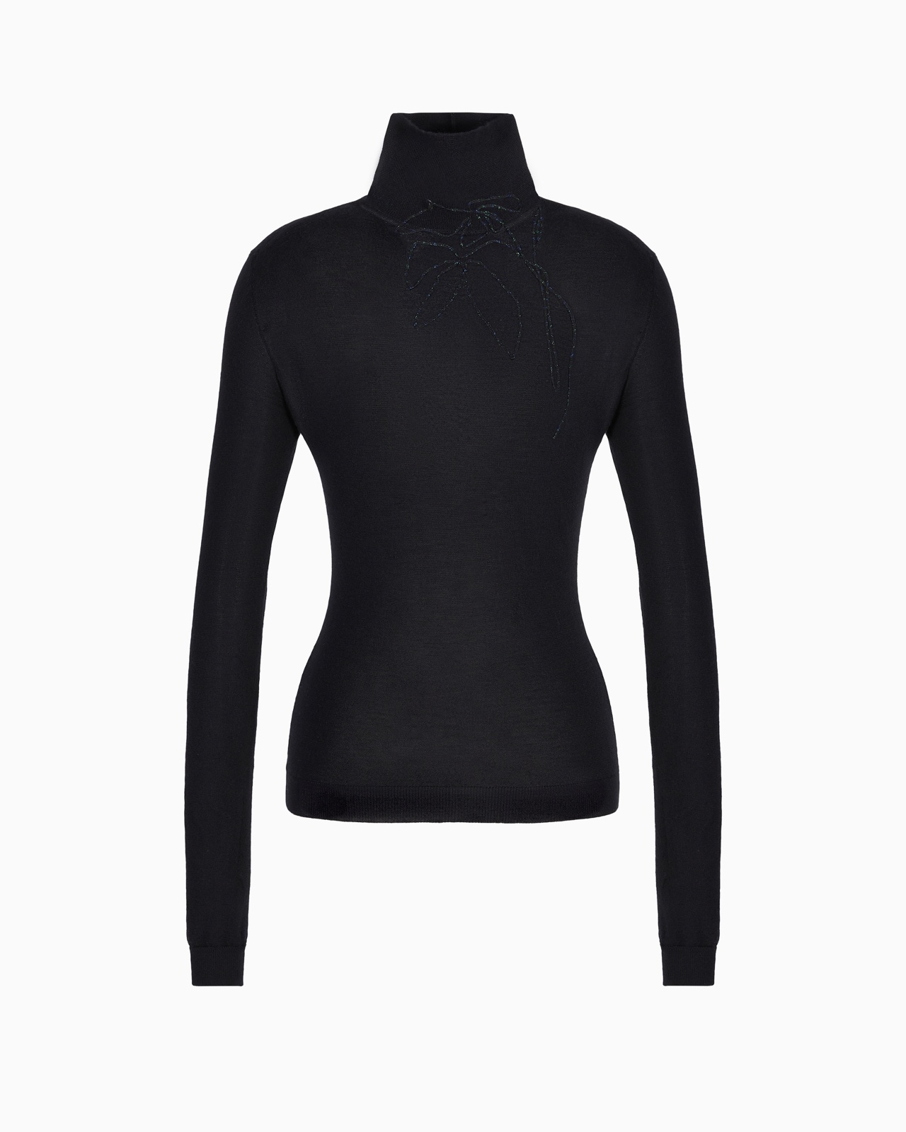 EMBROIDERED CASHMERE AND SILK MOCK-NECK JUMPER