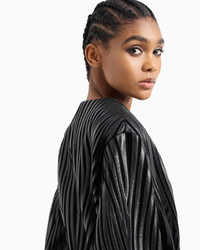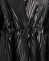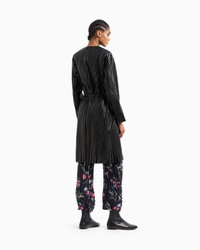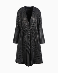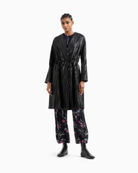 Exquisite coat in supple glove-quality nappa leather made with exquisite craftsmanship. The style has a V neck, concealed button closure and drawstring waist with nappa leather tubing. The item features a sinuous motif created through the application of thin strips of nappa leather embroidered on a black velvet base, which echoes the recurring theme of the collection. Dramatic and special, it elegantly completes numerous looks. V neck Fastening at the waist with two press studs Tubular leather drawstring to tie at the waist Side pockets with small press-stud closure Silk habotai lining Smooth nappa leather interior details Bonded nappa-leather inside pocket with embossed logo Length: 105 cm Made in Italy Product Code: GW000343AF11861UC001