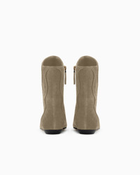 Ankle boots made from supple suede, featuring a streamlined shape and convenient side zip for slipping on and off easily. A sophisticated, matching-tone threading and embroidery motif adorns the upper, creating a flowing, feminine design. They are a special reworking of the iconic cowboy boot, perfect for everyday wear. Tapered toe Side zip closure Matching threading and embroidery detail Leather soles with rubber inserts Made in Italy Product Code: X1M414XR400U695