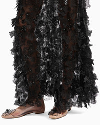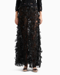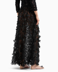 Elegant and delicately sensual skirt made of tulle, with flowing, lightweight lines. Small, delicate flowers embroidered with black beads, baguettes and crystals seem to dance across the black tulle base, giving the piece movement and three-dimensionality. The result of expert Italian craftsmanship, this unique, luxurious item designed for special occasions and exclusive events is completed by a zip fastening at the centre back and a black satin lining. Smooth waistband Back zip closure One tulle layer featuring embroidered petals with beads, baguettes and hand-applied sequins One layer of starlit-sky tulle Satin lining Length: 110 cm Made in Italy Product Code: GW000190AF12254ZZ017