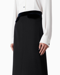Elegant and sophisticated, this midi skirt is crafted from barathea wool and finished with matching velvet details at the waistband and flap pockets. A style to team with the collection’s jackets and shirts, the perfect complement to formal looks. Product Code: 3WHNN08KT04841PZ01 Details Composition 100% Virgin Wool Velvet strap Side zip closure Two pockets with velvet contoured flap Back centre slit Unlined Made in Italy Fitting The model is 178 cm tall and is wearing size 38/S Italian Size