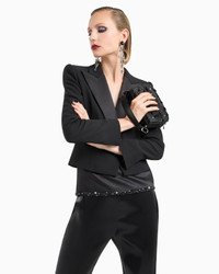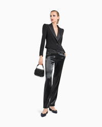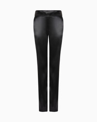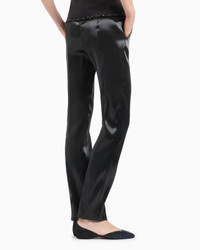 Distinctive straight trousers made of fluid silk that elegantly dress the feminine silhouette. With a smooth waistband and concealed zip fastening, the style is particularly lustrous and comfortable to wear. Team them with the collection's tops for a sensual, feminine look. <br>The piece is part of the exclusive collection that celebrates the connection between Giorgio Armani and the world of Hollywood. A colour palette of deep blues combines with a profound and ever-elegant black, to create a sparkling, luxurious selection inspired by the limelight and most exclusive Hollywood parties. Extremely sophisticated pieces with iconic lines are made of velvets, silks and satins enlivened by crystal and rhinestone embellishments and refined workmanship. Looks for him and her, designed for evenings and special occasions. Smooth waistband Two side pockets Unlined Made in Italy Product Code: GW001437TE15798UC001