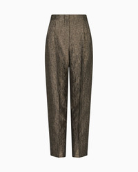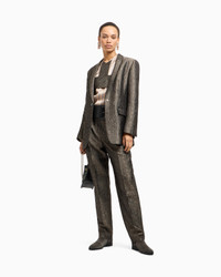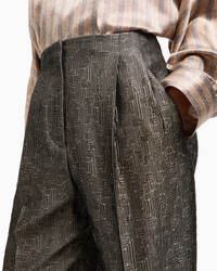 Single-pleat trousers made from silk and wool in an opulent jacquard with an irregular geometric motif adding movement. The style features an essential construction, with a smooth waistband, hook and zip closure and side pockets. A perfect offering to pair with a collection shirt or to wear with the matching jackets for a sophisticated total look. The piece is part of the New Normal selection, an offering that reinterprets the brand’s archive looks with a modern twist. Pieces in elongated and fluid shapes and with an androgynous flavour dress the feminine silhouette with elegance for day-to-night looks. This season it comes in a natural colour palette animated by a series of chevron motif and houndstooth shapes, a clear reinterpretation of pieces "stolen" from the male wardrobe with a feminine twist. Single-pleat trousers Smooth waistband Zip closure Two side pockets Single back welt pocket Unlined Length: 115 cm Product Code: GW001569TE16797MC023
