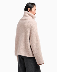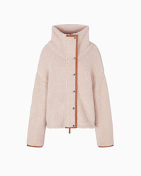 Wraparound blouson made of shearling-effect curly wool, defined by contrasting leather details. The style is distinguished by its generous stand collar, double-pull zip and button closure and side pockets. A sophisticated item, also perfect for the city, to complete looks with a modern twist. The garment is part of the Giorgio Armani Neve collection, a selection dedicated to the world of winter sports and mountains. Featuring a colour palette inspired by nature and strongly connected to the ready-to-wear collection, the selection unfolds through relaxed, enveloping volumes, refined jacquard motifs and sophisticated, high-performance fabrics. Styles embellished with inserts and details in luxurious shearling lambskin, designed to bring elegance to every moment, from descents on the most famous slopes to apres-ski in the most exclusive locations. Wide stand collar Double-pull zip fastening with placket and press studs Two side pockets Long sleeves with dropped shoulders Contrasting lambskin leather details Made in Italy Product Code: GW002253AF20231U8020
