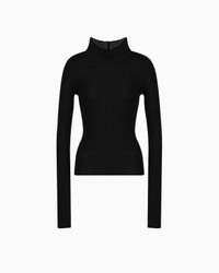 The pursuit of contact with nature, its true essence, and the energy of Freeride inspire the new Giorgio Armani Neve women’s collection.Featuring an intense and vibrant colour palette, reminiscent of the blue of a clear sky, the green of trees and the white of snow, it offers pieces with a modern fit. They are embellished with innovative details and processes, for athletic and sophisticated looks at the same time, to experience winter sports in an unmistakable and evergreen style. Extraordinarily versatile in its streamlined silhouette, this cashmere mock-neck jumper will complement many cold-weather outfits. Featuring a rib knit, it is soft and comfortable to wear, protecting you from the cold in style and elegance. Fineness: 18 Mock neck Long sleeves Ribbed Made in Italy Product Code: 6LAM36AM66ZUC99