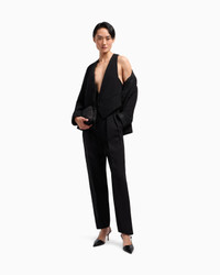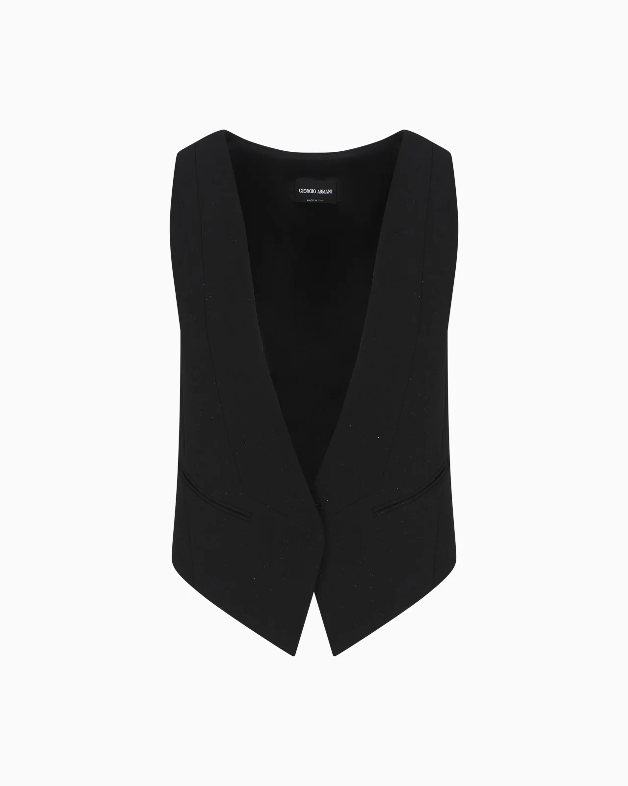 A plunging V-neckline defines this single-breasted waistcoat made from silk cady. Brightened by a subtle glitter, it features two slanted welt pockets and contoured openings at the back. A feminine and versatile offering, perfect for wearing with the collection’s shirts. Single-breasted waistcoat V neck Front closure with press stud Two slant welt pockets Symmetrical openings at the back Lined Made in Italy Product Code: GW000794TE14756UC001