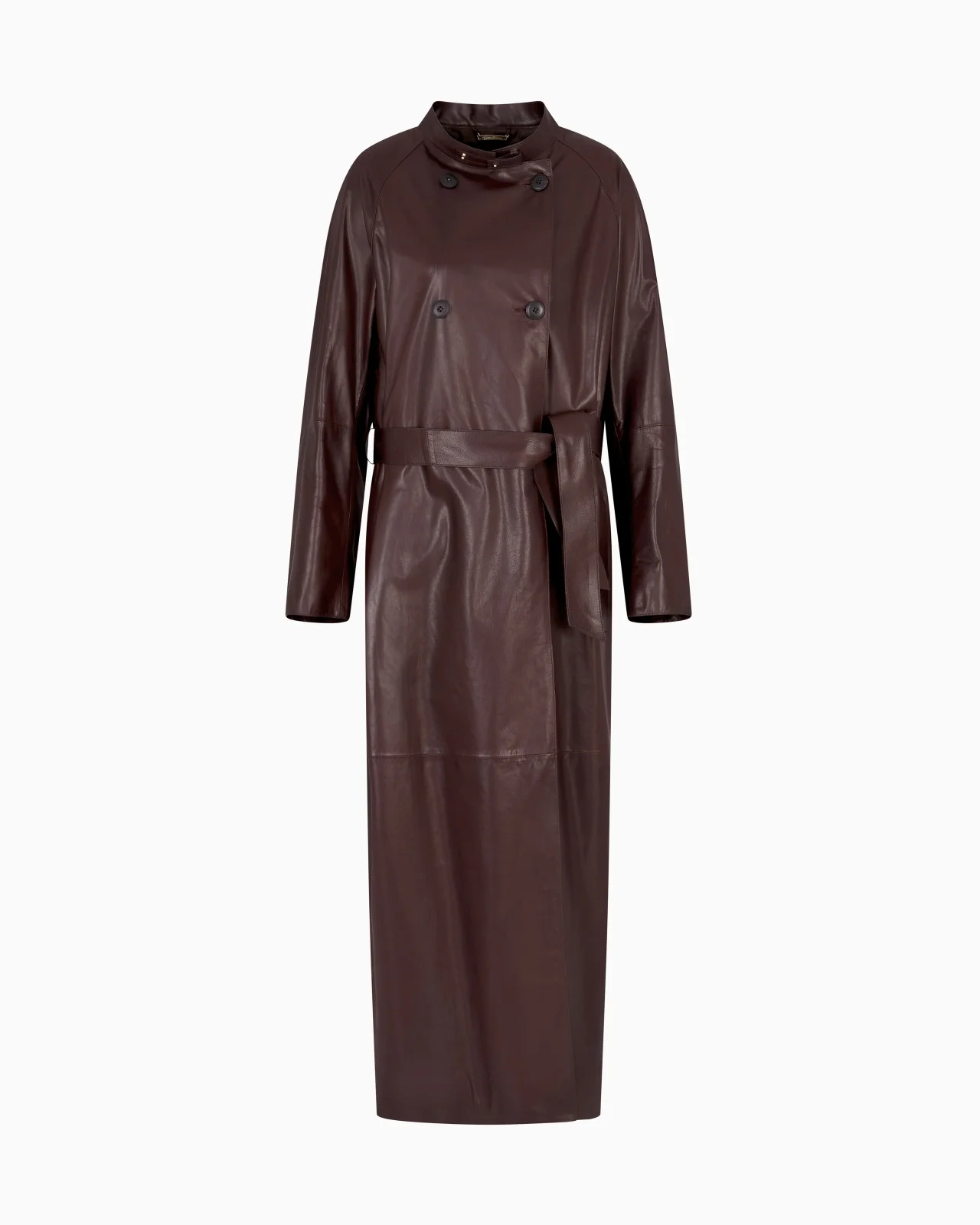 A special take on a versatile, athletic piece: the trench coat. Crafted from supple glove-quality nappa calfskin, it features an exposed double-breasted button closure, belted waist and silk habotai lining. It expertly provides a touch of style in a wide array of looks. Slightly upright collar with strap closure Buttoned double-breasted closure Nappa-leather belt at the waist Two side pockets Silk habotai lining Length: 127 cm Made in Italy Product Code: GW001132AF16530U6032