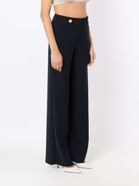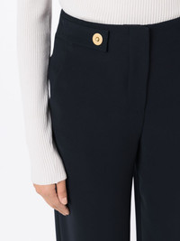 high-rise straight-leg trousers Highlights - Navy blue - Gold-tone hardware - Straight hem - High-waisted - Concealed front fastening - Two diagonal pockets to the sides Made in Italy Composition Polyester 100% SIZE & FIT Model measurements Height 5 ft 10 in(1.78 m) Bust/Chest 36.22 in(92 cm) Hips 35.43 in(90 cm) Waist 27.16 in(69 cm) FittingInformation Designed with a wide-leg cut, these trousers allow for a close fit at the waist and offer a loose and roomy fit over the leg Made from a midweight non-stretch fabric This piece fits small – take one size up