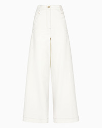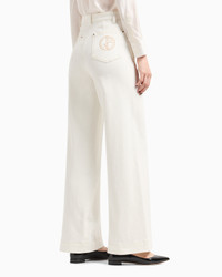 Wide-leg trousers made from stretch-cotton denim, with a comfortable fit and soft feel. The high-waisted style with slanted topstitched pockets is customised with an embroidered GA logo on the back pocket, recalling other pieces from the collection. Extremely versatile, it perfectly completes a wide array of looks. Product Code: 3SHPP0UNT040M1U1SZ Details Composition 98% Cotton 2% Elastane High waisted Button and zip fastening Two front slant pockets Two back patch pockets Embroidered GA logo Made in Italy