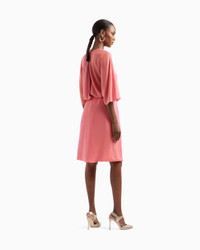 Lightweight and ethereal, this short dress is crafted from luxurious silk chiffon and is available in two shades. A special style, featuring a sensual back neckline, short sleeves and a skirt with delicate pleats that add movement. An offering that elegantly adorns the female figure, perfect for wearing on special occasions. Crew neck Three-quarter length wide sleeves Front draping Back neckline Pleated skirt Back central zip fastening Unlined Length: 66 cm from the waist Made in Italy Product Code: GW000877TE13973U4162