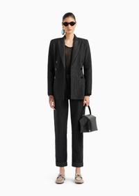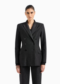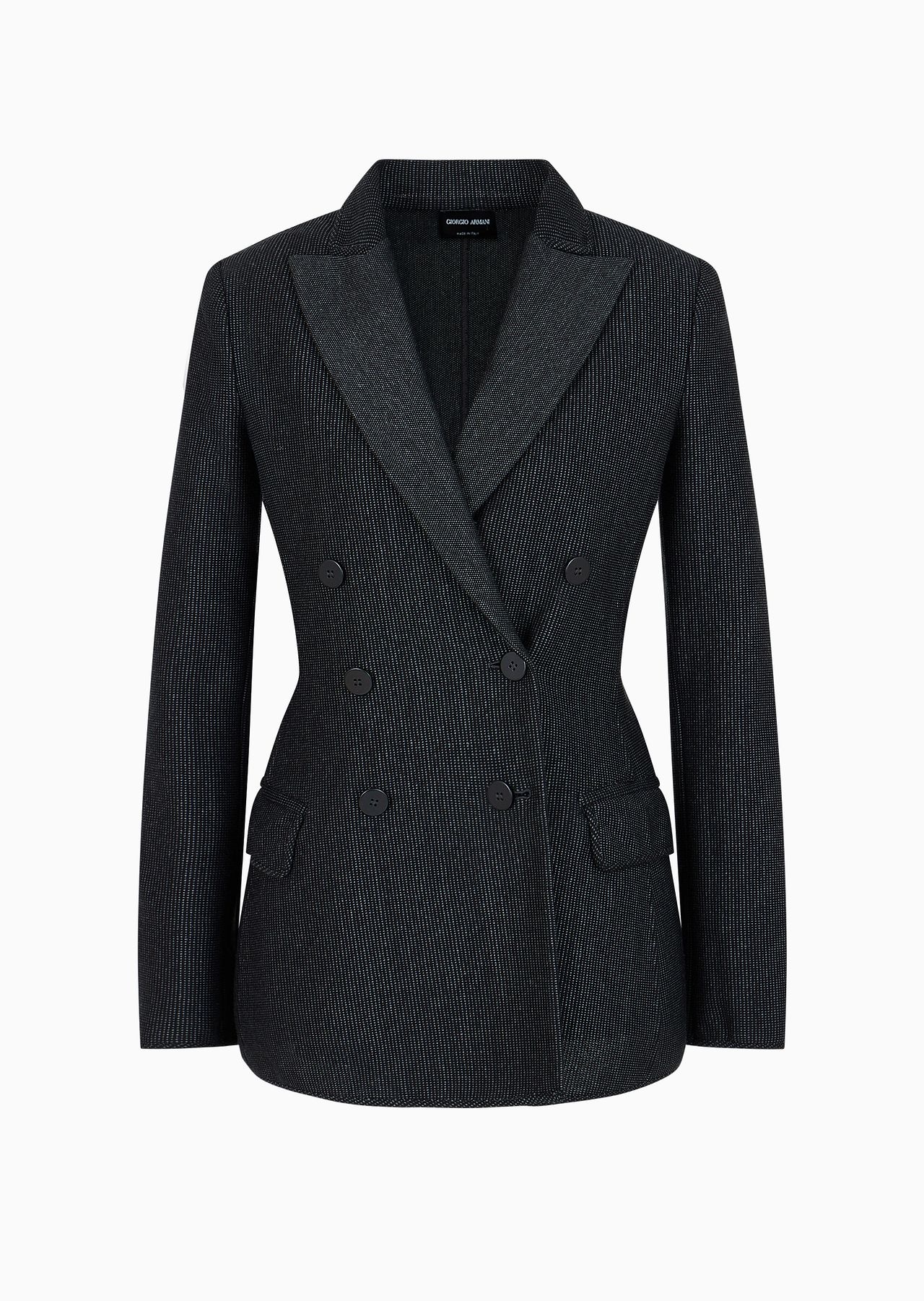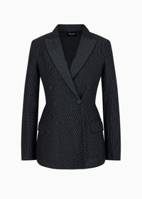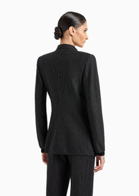 Single-breasted jacket in a linen-blend jersey, featuring a jacquard weave that elegantly dresses the silhouette. The garment’s laid-back spirit is accentuated by the fastening with special buttons and the notched lapel neckline. It perfectly completes daytime looks for the office. Product Code: 3DAG57AJJLZ1FC99 Details Composition 50% Cotton 31% Linen 16% Polyamide 3% Elastane Double-breasted jacket Notched lapels Six-button closure Two flap pockets Central back slit Unlined Length: 70 cm Made in Italy Fitting The model is 178 cm tall and is wearing size 38/S