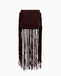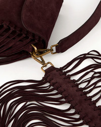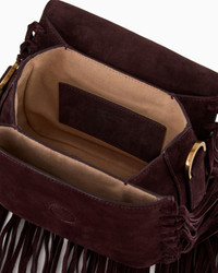The summer spirit also pervades accessories, as can be seen in this refined version of the iconic la Prima shoulder bag. Compact in shape, but big on charm, the fringed frame adorns its curved, feminine, shapes, framing the central body of the suede bag. A one-of-a-kind, exquisite bag that can be worn in three different ways thanks to the double shoulder strap, making it perfect for a wide array of looks. Product Code: Y1E138YVU6D180310 Details Composition 100% Calf-skin leather Embossed, gold-finished Giorgio Armani Milano logo Cross-body bag framed by fringes Magnetic buttoned closure The inside features a card holder, lipstick compartment and vanity mirror with its own slot Light gold plating Fringe trim Measurements: 20 x 16 x 12 cm Made in Italy